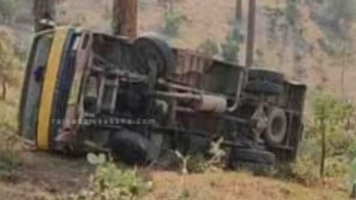 स्कूल बस खाई में गिरने से दो बच्चे घायल, मचा हड़कंप