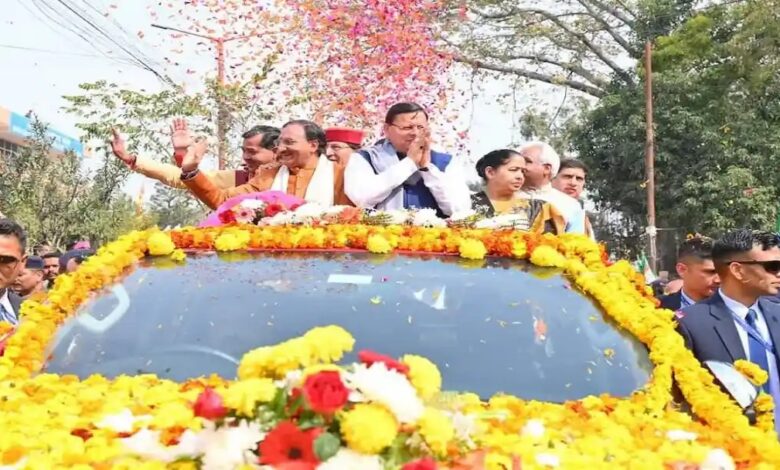 हरिद्वार। ऐसा कहा जा सकता है कि 2024 लोकसभा चुनाव का बिगुल इस रोड शो के माध्यम से मुख्यमंत्री पुष्कर सिंह धामी ने बजा दिया है। उत्तराखंड की लोकसभा की 5 सीटों पर जीत दिलाने के वादे को पूरा करने में सीएम धामी जुट गए हैं। रोड शो के दौरान स्कूल के बच्चों के साथ महिलाएं भी सड़कों पर देखने को मिलीं।
