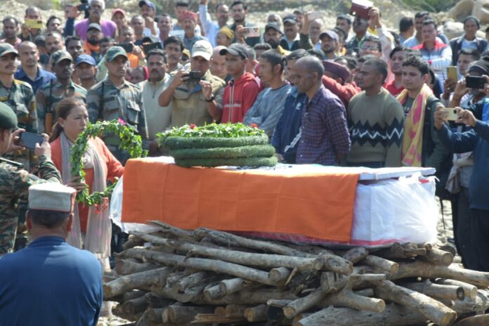 अल्मोड़ा। मणीपुर में नक्सली मुठभेड शहीद हुए अल्मोड़ा निवासी कमल भाकुनी का पर्थिव शरीर गुरूवार को पंचतत्व में विलीन हो गया। अल्मोड़ा के चनौदा के बुंगा गांव में जब शहीद के शव को लाया गया, तो पूरे गांव की आंखें आंसुओं से भर आईं। मात्र 24 साल की उम्र में मां भारती की रक्षा करते हुए अपने प्राणों की आहुति देने वाले कमल अपने पीछे अपनी मां और पिता को छोड़ गए हैं।