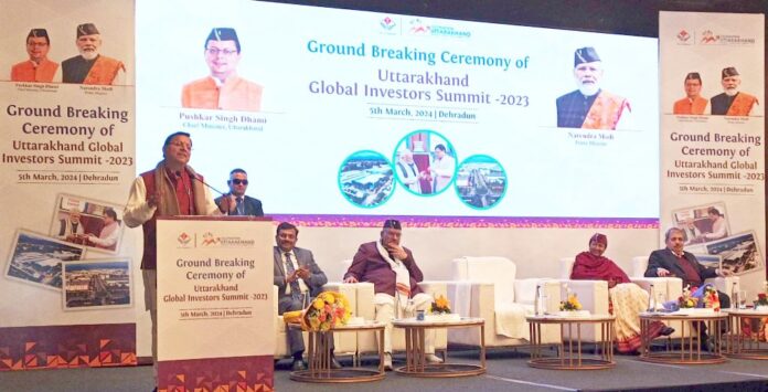 देहरादून। मुख्यमंत्री पुष्कर सिंह धामी ने मंगलवार को राजपुर रोड स्थित होटल में उद्योग विभाग द्वारा आयोजित उत्तराखण्ड ग्लोबल इन्वेस्टर सम्मिट-2023 में हुए निवेश प्रस्तावों की ग्राउण्ड ब्रेकिंग सेरेमनी में प्रतिभाग किया। इस अवसर पर मुख्यमंत्री ने 11 परियोजनाओं का शिलान्यास करने के साथ ही उद्योग विभाग के 64 अभ्यर्थियों को नियुक्ति पत्र भी प्रदान किये। मुख्यमंत्री ने कार्यक्रम में उद्योग जगत से आये हुये उद्योगपतियों तथा प्रतिनिधियों का स्वागत, करते हुये कहा कि आज ग्राउंडिंग सेरेमनी के तहत 27 हजार करोड़ की परियोजनाओं की ग्राउण्डिग की जा रही है, इस प्रकार अब तक 71 हजार करोड़ की परियोजनाओं की ग्राउण्डिग की जा चुकी है।