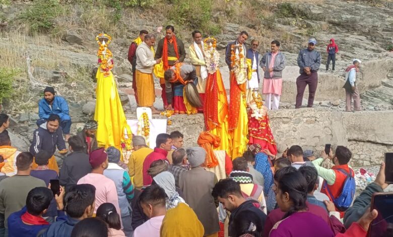 हवन और आरती के साथ देवताओं का तिलक किया गया। यहां उपस्थित स्थानीय भक्तों के जयकारों से पूरा वातावरण भक्तिमय हो गया।