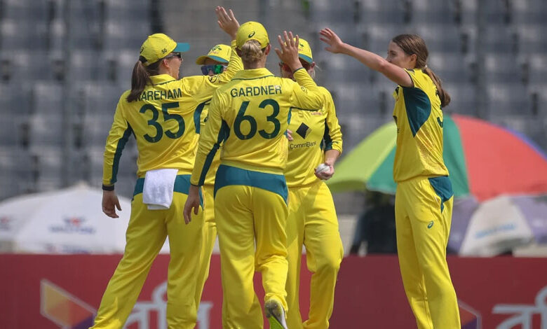 जॉर्जिया वेयरहम ने दो बल्लेबाजों को आउट किया। मेगन शूट, एलिस पेरी, एश्ली गार्डनर, सोफी मोलिन्यू और ऐनाबेल सदरलैंड ने एक-एक बल्लेबाज को आउट किया। इससे पहले ऑस्ट्रेलिया ने आज यहां टॉस जीतकर पहले बल्लेबाजी करते हुए कप्तान अलिसा हीली 29 गेंदों में 45 रन और तालिया मैक्ग्रा के 29 गेंदों पर नाबाद 43 रनों की बदौलत निर्धारित 20 ओवरों में छह विकेट पर 155 रन का स्कोर खड़ा किया था। बेथ मूनी 10 रन, एश्ली गार्डनर 16 रन, एलिस पेरी आठ रन, जॉर्जिया वेयरहम चार रन और ग्रेस हैरिस ने 19 रनों का योगदान दिया। बांग्लादेश की ओर से नाहिदा अख्तर ने तीन विकेट लिये। शोरिफा खातून और राबेया खान ने एक-एक बल्लेबाज को आउट किया।