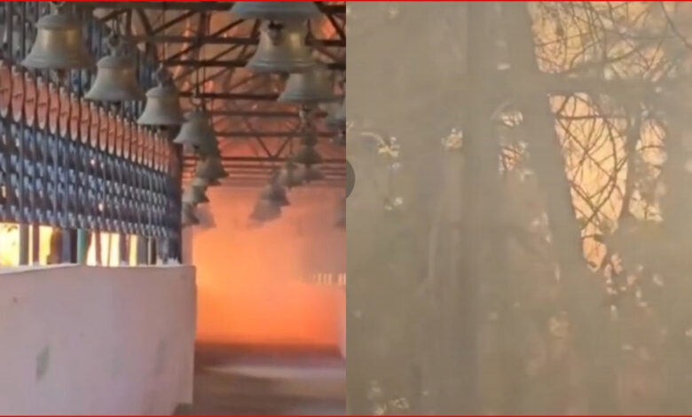 धीरे धीरे आग मंदिर परिसर तक पहुंच गई। आग विकराल रूप लेते हुए मंदिर के गेट तक पहुंच गई। मंदिर में दर्शन करने पहुंचे लोगों में आग को देख कर अफरा तफरी मच गई। श्रद्धालु जान बचाने के लिए इधर उधर भागने लगे। वन विभाग की टीम और स्थानीय लोगों ने तुरंत मंदिर में आए दर्शनार्थियों को वहां से बाहर निकालकर सुरक्षित स्थान पर पहुंचाया। वहीं नीचे सड़क पर खड़े वाहनों को भी घटना स्थल से हटाया गया। इस तरह बड़ी मुश्किल से जनहानि की बड़ी घटना होने से बच गई।