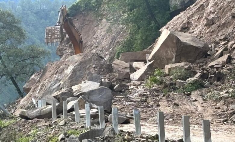 डोलिया देवी के पास भूस्खलन जारी