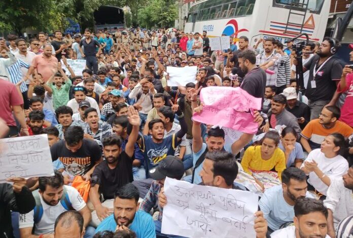 आज यहां अपनी चार सूत्रीय मांगों को लेकर बेरोजगार संघ के बैनर तले सैकड़ो बेरोजगार परेड ग्राउंड में एकत्रित हुए। जहां से उन्होंने मुख्यमंत्री आवास के लिए कूच किया। परेड ग्राउंड से सुभाष रोड, दिलाराम तीराहा होते हुए वह जैसे ही हाथीबडकला पुलिस स्टेशन के पास पहुंचे तो पुलिस ने बैरकेडिंग लगाकर उनको रोक दिया। जिसके बाद उनकी पुलिस से तीखी नोंक झोंक हुई। जिसके बाद वह वहीं पर धरने पर बैठ गये। उनका कहना था कि मंत्रीमंडल की बैठक में लिए गये निर्णय के अनुसार प्रदेश के 117 राजकीय महाविघालयो, 6 विश्वविघालय परिसरो एवं प्रत्येक जनपद के एककृएक राजकीय इण्टर कॉलेज में योग प्रशिक्षक की तैनाती के स्थान पर विभागीय संविदा के आधार पर की जाए। उन्होंने कहा कि प्रारंभिक शिक्षा से माध्यमिक शिक्षा तक के पाठयव्रफमों में योग को मुख्य विषय के रूप में सम्मिलित कर योग शिक्षक के नवीन पदों का सृजन किया जाए। उन्होंने कहा कि प्रदेश के योग प्रशिक्षित बेरोजगार पिछले 18 वर्षाे से नियुक्ति की मांग को लेकर संघर्षरत है जिसके परिणाम स्वरूप बडी संख्या में योग प्रशिक्षित बेरोजगार नौकरी की अधिकतम आयु सीमा को पार कर चुके हैं। इसलिए नौकरी की अधिकांश आयु सीमा में तीन वर्ष की विशेष छूट दी जाये। जिसके बाद उन्होंने जिला प्रशासन के माध्यम से मुख्यमंत्री को ज्ञापन प्रेषित किया।?