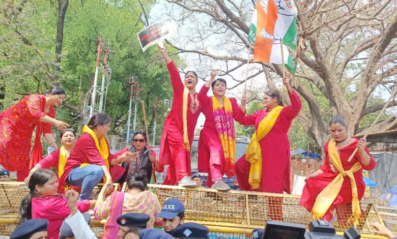 इस दौरान कुछ महिलाओं ने जबरदस्ती बैरिकेडिंग पर चढ़ विरोध प्रदर्शन भी किया। जबकि कुछ महिलाओं पर सड़क पर बैठक गई और सरकार के खिलाफ धरना देने लगी। सरकार के खिलाफ अपना विरोध जताने के लिए देहरादून महानगर महिला मोर्चा की अध्यक्ष और पूर्व पार्षद उर्मिला थापा प्रतीकात्मक कुंभकरण की वेशभूषा में नजर आई, ताकि कुंभकर्णी नींद में सोई सरकार को जगाया जा सके।