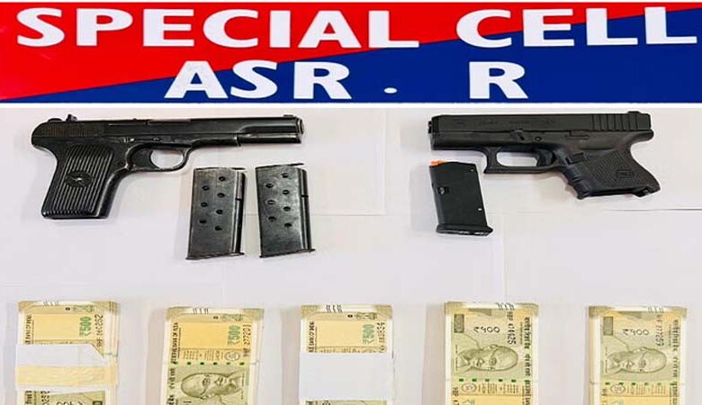 अमृतसर। सीमा पार से तस्करी और आतंकी नेटवर्क के खिलाफ एक बड़ी सफलता हासिल करते हुए अमृतसर ग्रामीण पुलिस ने रविवार को एक व्यक्ति को हथियारों और नकली मुद्रा के साथ गिरफ्तार किया। पुलिस महानिदेशक गौरव यादव ने बताया कि गिरफ्तार आरोपी की पहचान जर्मन सिंह के तौर पर हुई है। पुलिस ने उनके पास से एक ग्लॉक 9 मिमी पिस्तौल, एक .30 कैलिबर पिस्तौल, तीन मैगजीन और 2,15,500 रुपए की नकली मुद्रा बरामद की है। डीजीपी ने बताया कि प्रारंभिक जांच से पता चलता है कि यह खेप क्षेत्र में अशांति पैदा करने के लिए आईएसआई के गुर्गों द्वारा भेजी गई थी। उन्होंने बताया कि इस संबंध में अमृतसर के घरिंडा पुलिस थाने में प्राथमिकी दर्ज की गई है और लिंक का पता लगाने के लिए आगे की जांच जारी है।