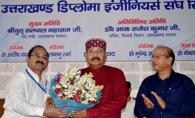 देहरादून। उत्तराखण्ड डिप्लोमा इंजीनियर्स संघ सिंचाई विभाग ने जो मांग पत्र प्रस्तुत किया गया है उन सभी न्यायोचित समस्याओं पर गंभीरता से विचार कर समाधान करने का प्रयास किया जायेगा। यह बात प्रदेश के सिंचाई मंत्री सतपाल महाराज ने यमुना कालोनी स्थित अधिकारी क्लब में उत्तराखण्ड डिप्लोमा इंजीनियर्स संघ सिंचाई विभाग के त्रयोदश महाधिवेशन -2025 के समापन अवसर पर संघ के सभी सदस्यों एवं पदाधिकारियों को महाधिवेशन के अनुशासित, भव्य एवं सफल आयोजन के लिए अपनी बधाई और शुभकामनाएं देते हुए कही।