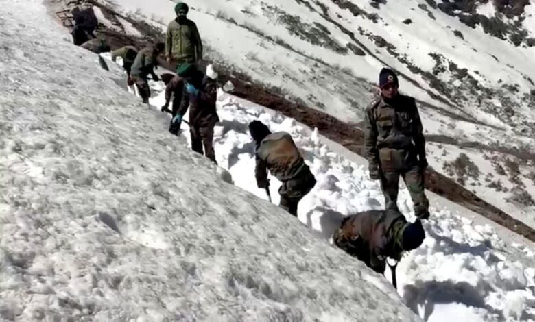 सेना के जवान तेजी से कर रहे मार्ग से बर्फ हटाने का काम