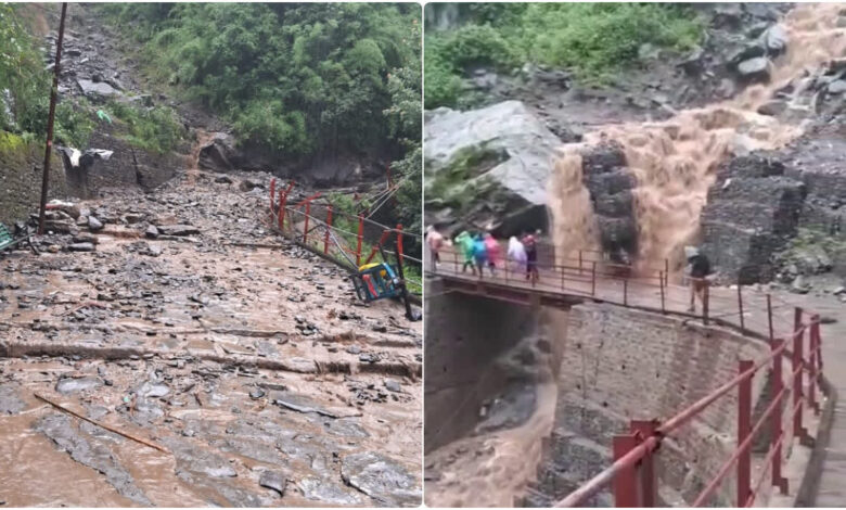 रुद्रप्रयाग। गौरीकुंड से केदारनाथ 19 किमी पैदल मार्ग के जंगलचट्टी के पास लगातार हो रही भारी बारिश के कारण गदेरा (नदी-नाला) उफान पर आ गया। गदेरे के उफान पर आने से मलबा पत्थर आने के कारण केदारनाथ धाम जाने वाला पैदल मार्ग आंशिक रूप से बाधित हो गया है। मलबा के साथ आए पत्थर की चपेट में आने से एक व्यक्ति की मौत हो चुकी है। खराब मौसम के चलते फिल्हाल केदारनाथ यात्रा पर रोक लगा दी गयी है।