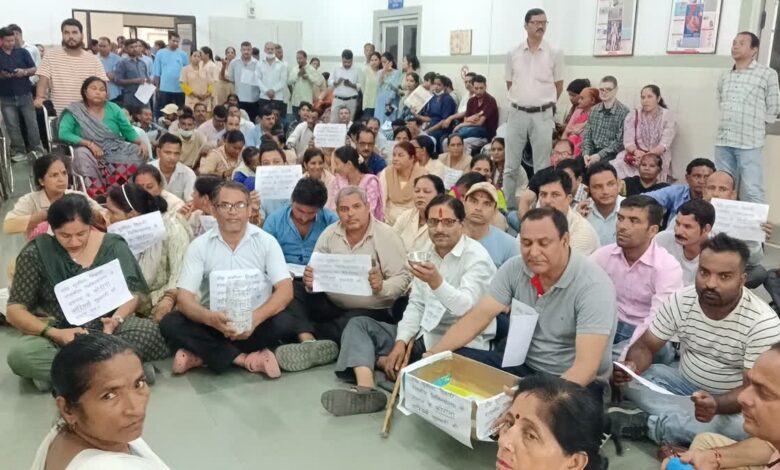 डॉ सुशीला तिवारी मेडिकल कॉलेज में उपनल कर्मचारियों ने मांगी भीख