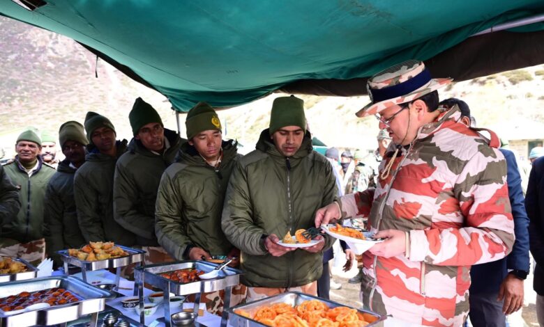 आईटीबीपी कैंप में जवानों को सीएम ने परोसी जलेबी