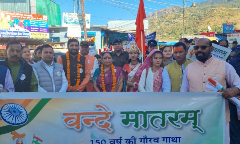 गैरसैंण। भारत के राष्ट्रीय गीत वन्दे मातरम के 150 वर्ष पूरे होने के उपलक्ष में गैरसैण के विभिन्न विद्यालयों के छात्र छात्राओं ने शुक्रवार को तिरंगा रैली निकाली। इस अवसर पर विधानसभा की अध्यक्ष ऋतु खंडूड़ी भूषण व विधायक अनिल नौटियाल भी तिरंगा रैली कार्यक्रम में शामिल हुए।