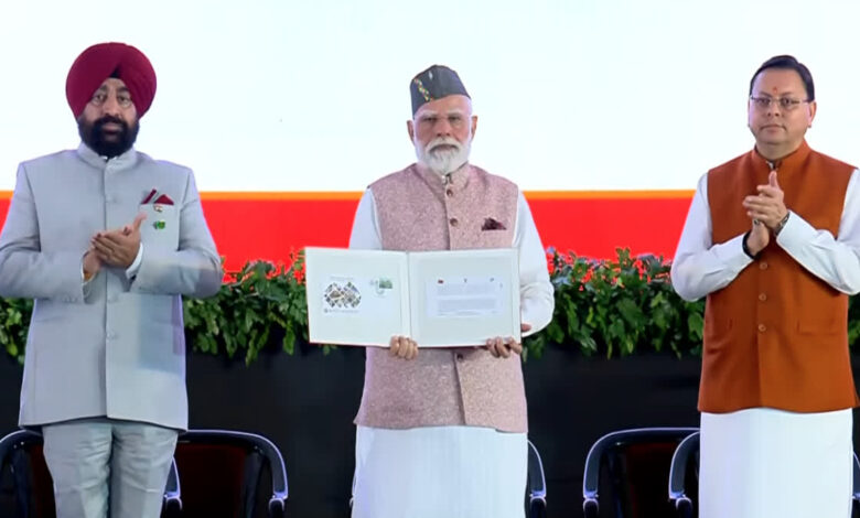 देहरादून। रविवार को उत्तराखंड राज्य गठन के रजत जयंती समारोह में प्रधानमंत्री नरेंद्र मोदी शामिल हुए। देहरादून के वन अनुसंधान संस्थान (एफआरआई) में आयोजित राज्य की रजत जयंती के मुख्य समारोह में शामिल होकर पीएम मोदी ने कई योजनाओं का उद्घाटन और शिलान्यास किया। सरकार ने यह कार्यक्रम उत्तराखंड राज्य के गठन के 25 साल पूरे होने का प्रतीक के तौर पर आयोजित किया है।