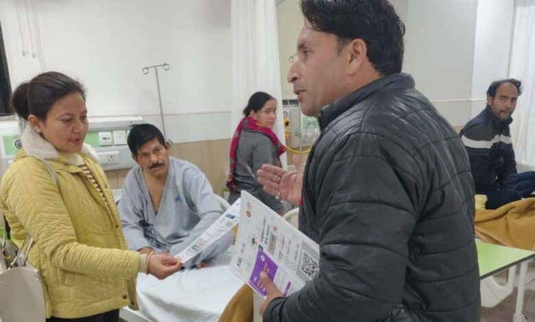 देहरादून। राज्य स्वास्थ्य प्राधिकरण की ओर से देहरादून जनपद के विभिन्न सरकारी व निजी चिकित्सा संस्थानों में आयुष्मान जागरूकता कार्यक्रम चलाया गया। इस अवसर पर अस्पताल में भर्ती मरीज, उनके तीमारदार व ओपीडी में आए लोगों को आयुष्मान व एबीडीएम की विभिन्न जानकारियों से रूबरू कराया गया। साथ ही उन्होंने आयुष्मान योजना की जानकारियों से युक्त पंपलेट व अन्य प्रचार सामाग्री वितरित की गई।