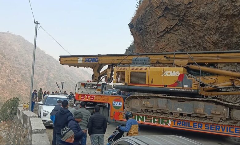 ऋषिकेश-बद्रीनाथ हाईवे पर रुद्रप्रयाग के पास फंसा ट्रोला
