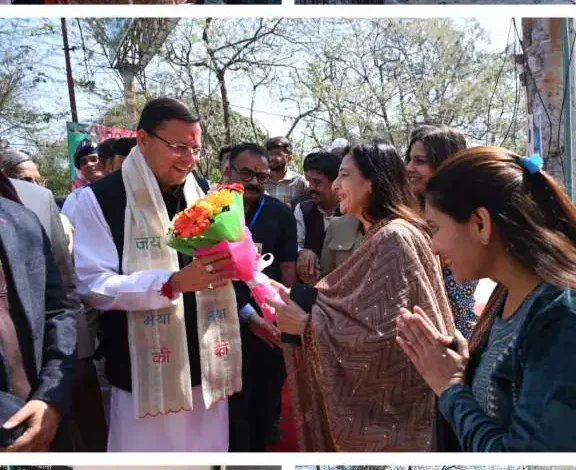 धामी का टीम थाल सेवा के अध्यक्ष उमंग वासुदेवा और अन्य सदस्यों ने स्वागत किया और उन्हें स्मृति चिन्ह भेंट किया।